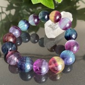 466【大玉★ラビットヘア】バイカラーフローライト★天然石パワーストーンブレスレット新品