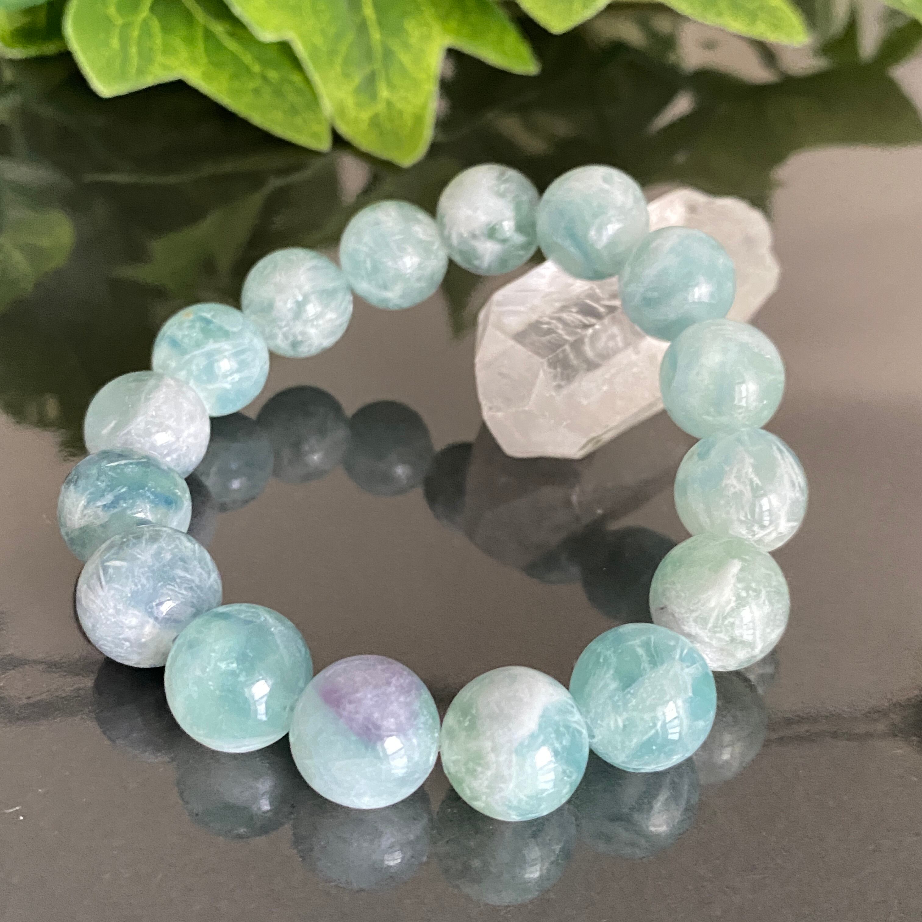 474【エンジェルフェザー】グリーンフローライト★天然石パワーストーンブレスレット
