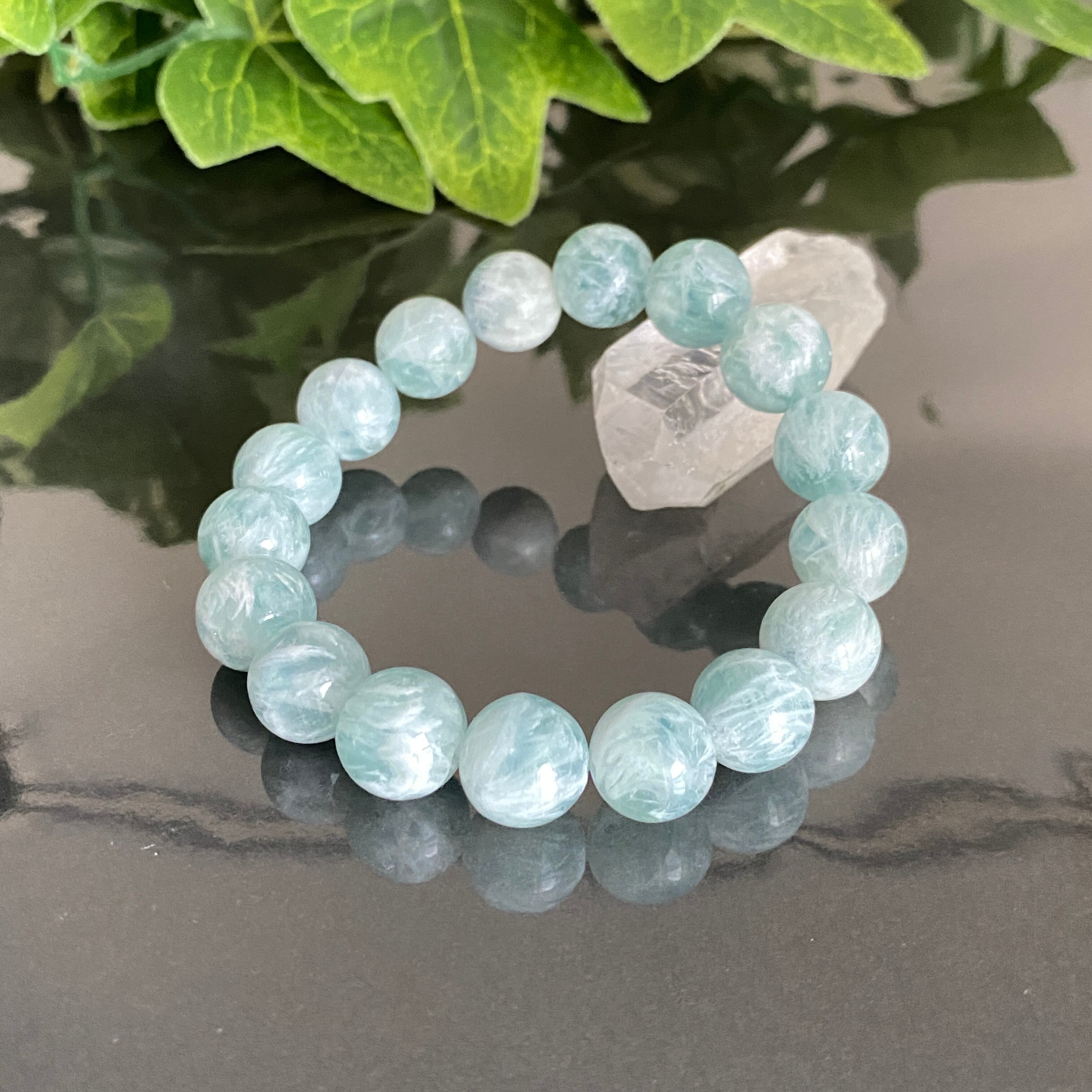 グリーンフローライトに白い天使の羽根がとても美しいブレスレットです。