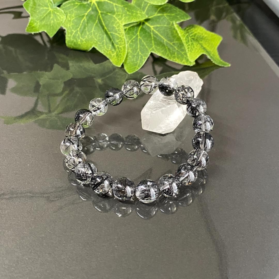 484-1★ブラックトルマリンインクォーツ【高品質】天然石パワーストーンブレスレット新品