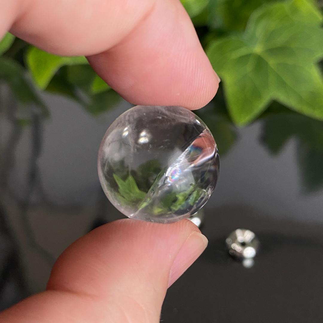 強く光る虹が入る天然のアイリスクォーツのスフィアになります。