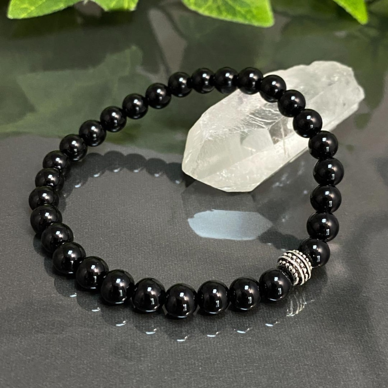 042-1★ブラックオニキス【自信・カリスマ性向上】天然石パワーストーンブレスレット新品