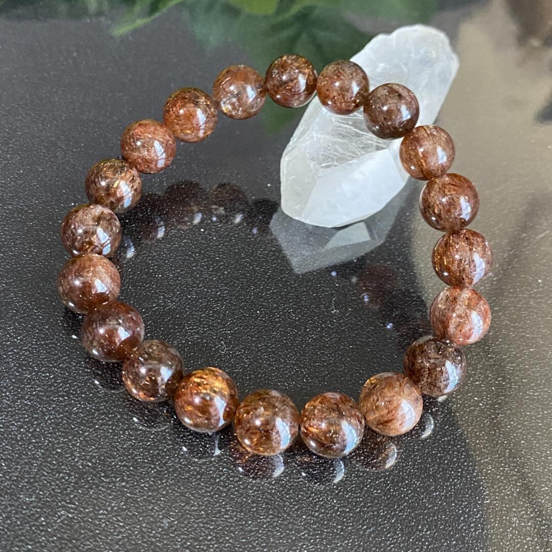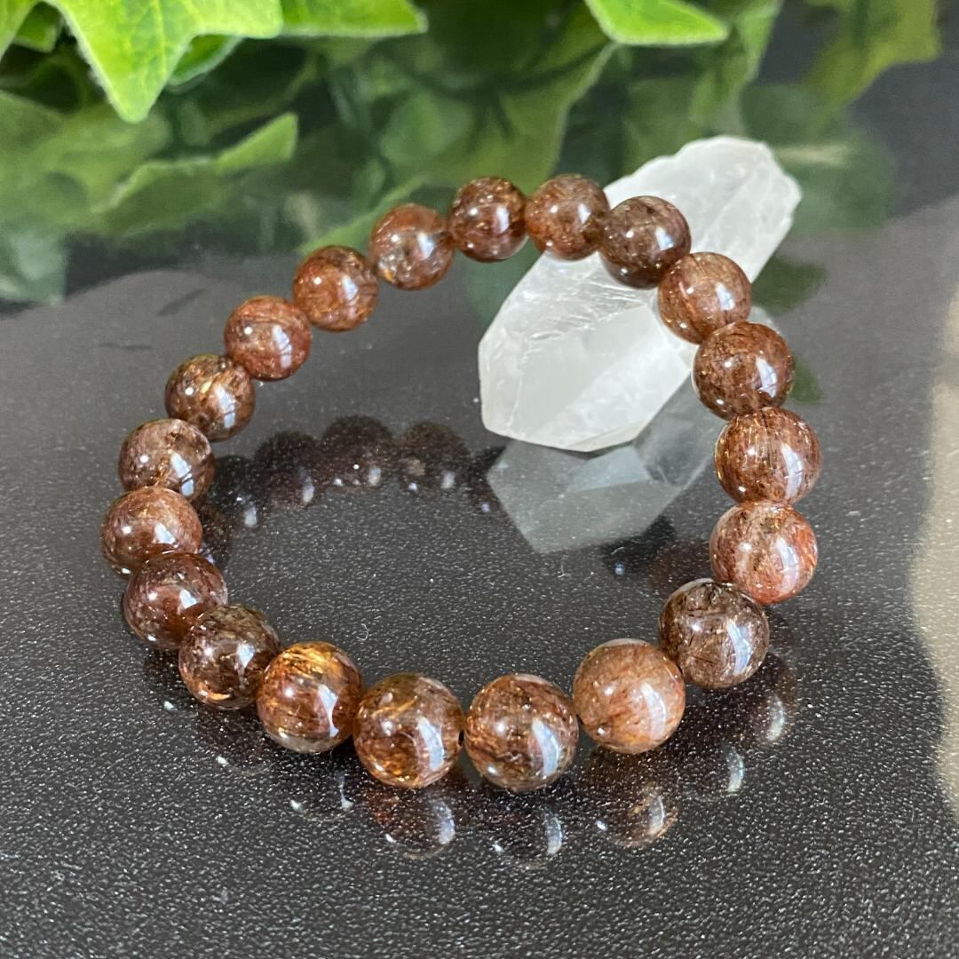 内包物の針がたくさん入る、品質の良いブレスレットです。光に当たるとキラキラと光ります。色味は写真よりも少し濃いめに見えるかもしれません。