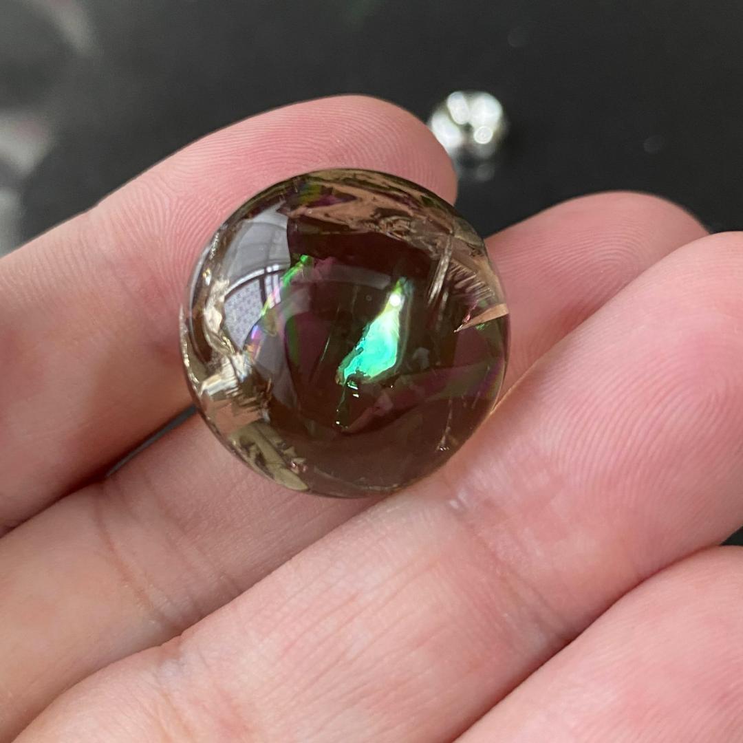 着色加工なしの希少なスモーキーアイリスです。虹の強さには個体差がありますので、早い者勝ちとなります。写真掲載の台座が在庫切れの場合、代わりの物をお送りします(サイズ違い・ゴールド色)。観賞用、インテリアの風水アイテムとして最適です。
